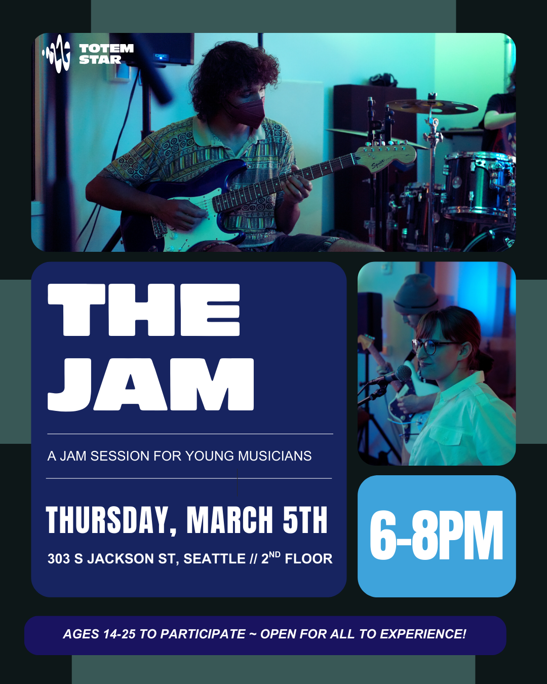The Jam is open for those ages 14-25 to participate, but open for all to experience. Invite your friends and family to one of our most popular, ongoing events, happening alongside The Pioneer Square Artwalk.